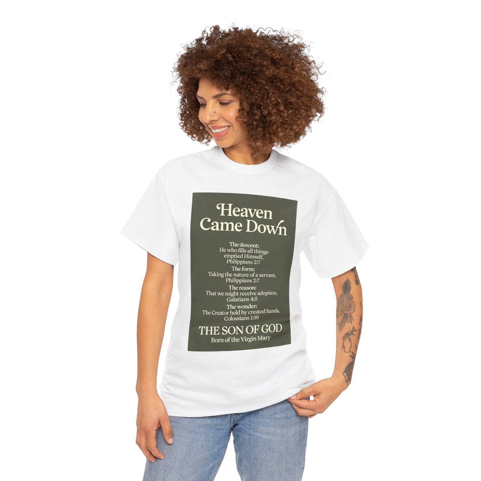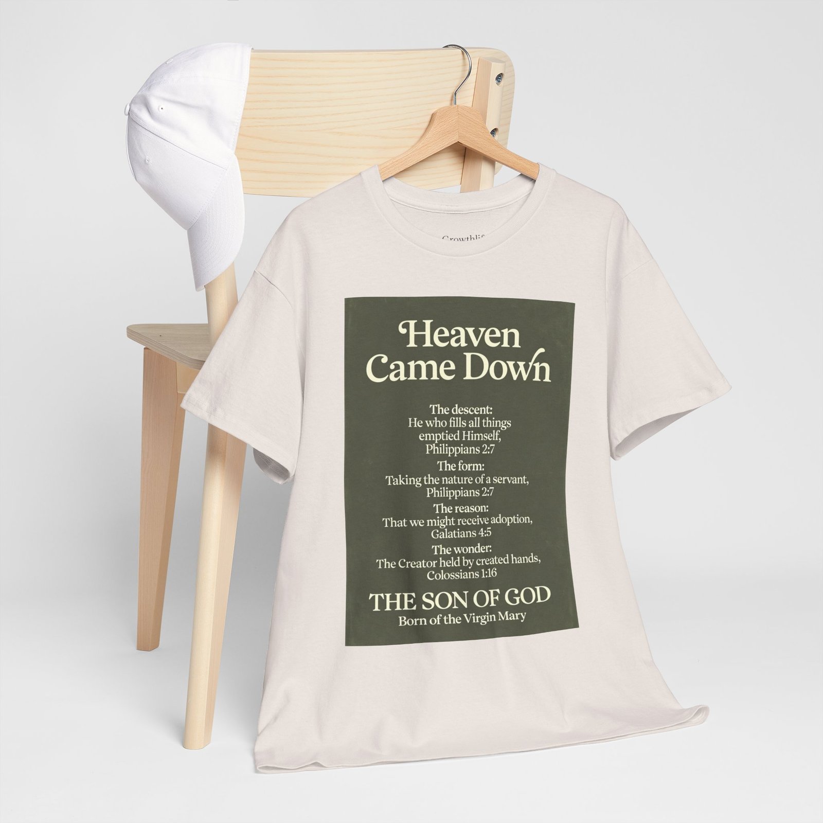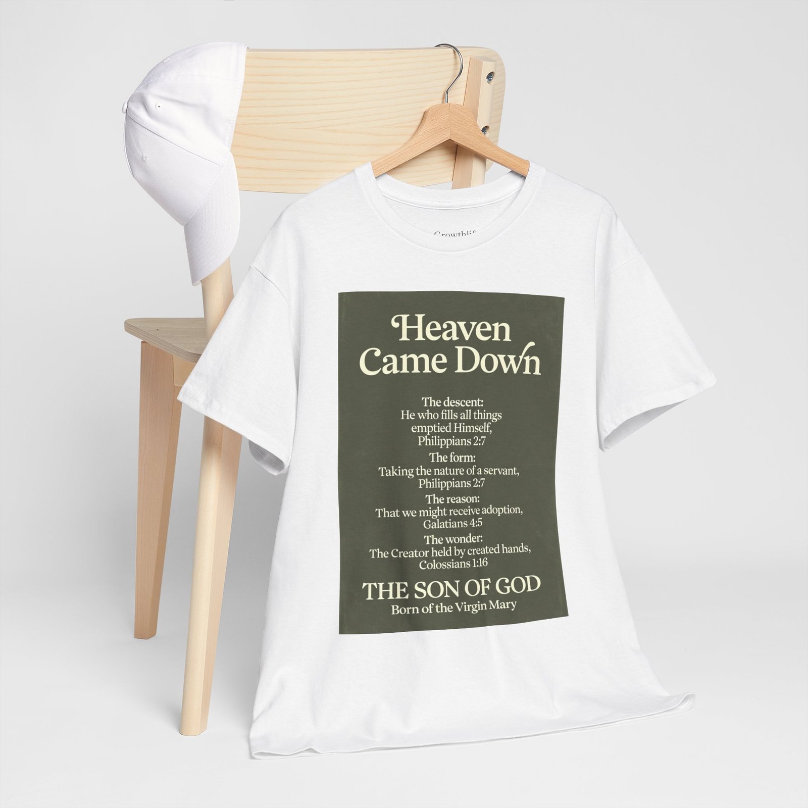 This soft, classic-fit tee carries a quiet, reverent aesthetic—an olive-green typographic panel centered on a clean white canvas. Lines of thoughtfully set text read like a modern hymn, inviting reflection without shouting. Wear it to church gatherings, contemplative walks, or casual meetups where faith and subtle style intersect. The medium-weight cotton drapes comfortably, holds shape, and feels familiar from the first wear. It’s the kind of shirt that reads like a statement and wears like a well-loved staple—simple, sincere, and steady.