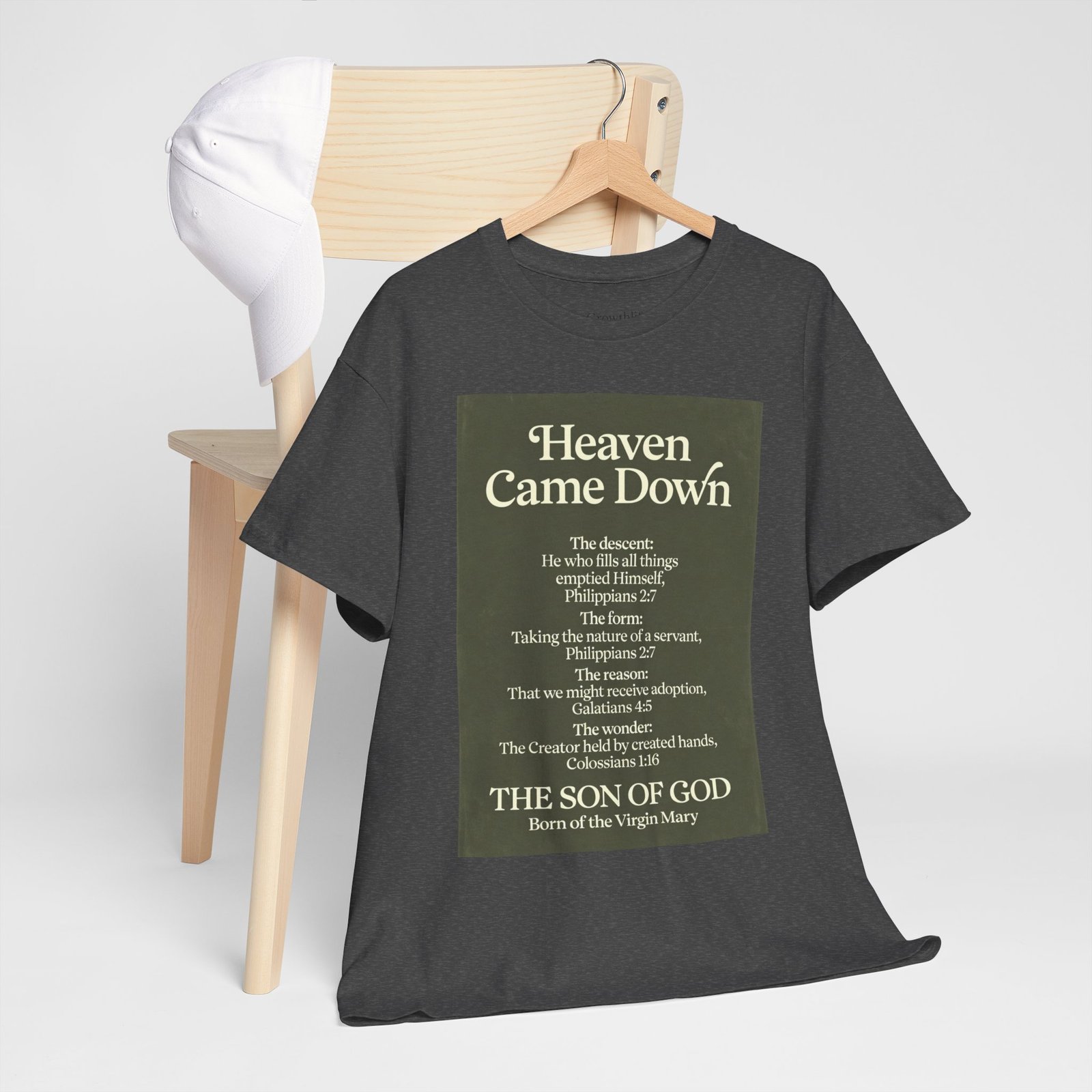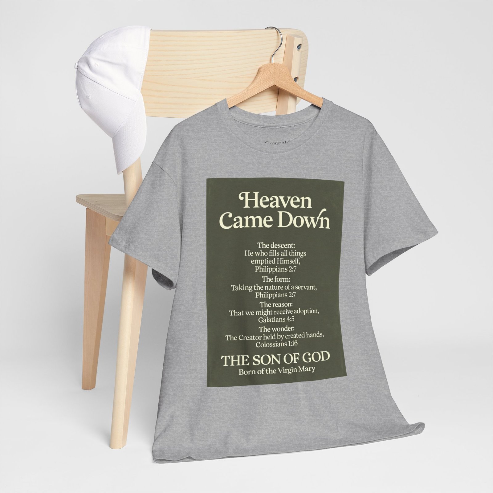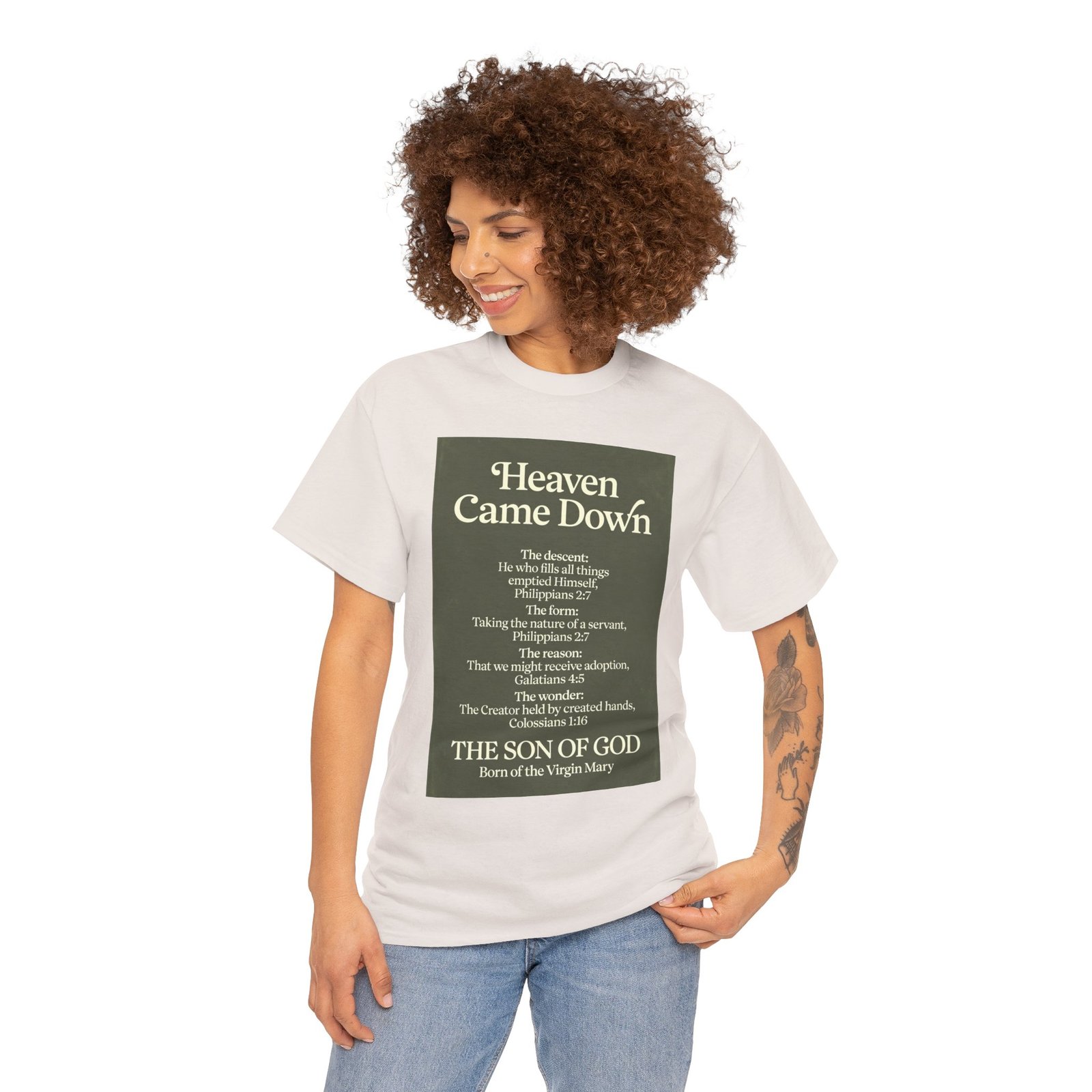This soft, classic-fit tee carries a quiet, reverent aesthetic—an olive-green typographic panel centered on a clean white canvas. Lines of thoughtfully set text read like a modern hymn, inviting reflection without shouting. Wear it to church gatherings, contemplative walks, or casual meetups where faith and subtle style intersect. The medium-weight cotton drapes comfortably, holds shape, and feels familiar from the first wear. It’s the kind of shirt that reads like a statement and wears like a well-loved staple—simple, sincere, and steady.